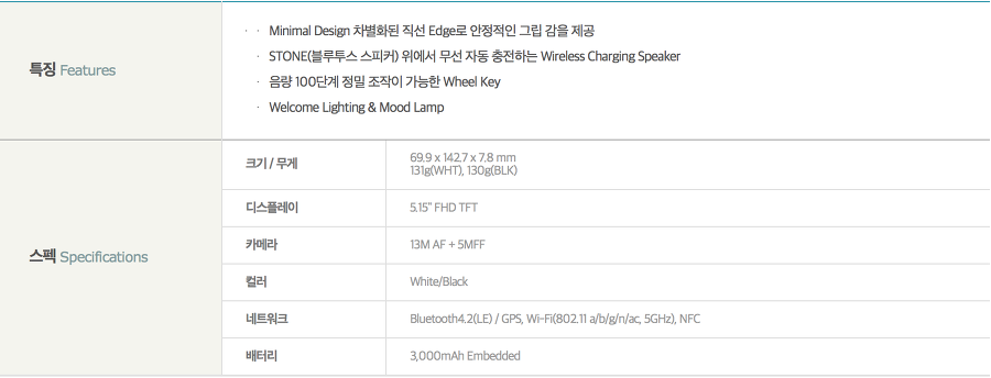 그 외에도 블루투스 4.2를 사용하고, ac를 지원하는 Wifi, 1.2Ghz 옥타코어를 사용하고 있습니다.