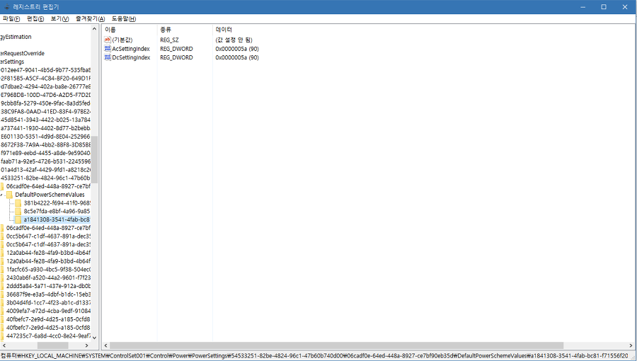 각 항목마다 하위메뉴를 열면 DefaultPowerSchemeValues가 있습니다.