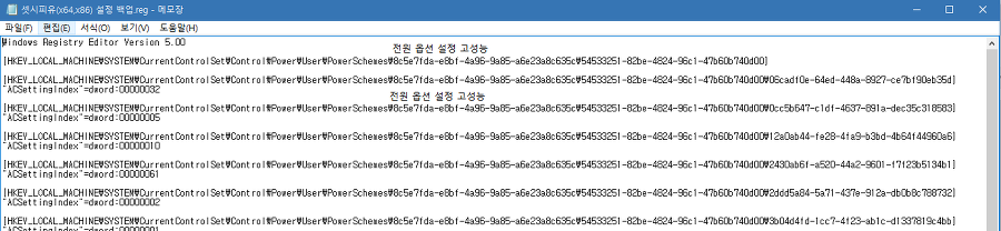 다음은 전원 옵션에서 설정한 내용을 백업하는 방법입니다.