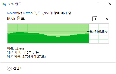 아래 예시에서는 D:\Nexon\Elsword에 설치 된 프로그램을 E::Nexon\Elsword로 이동하는 것을 설명합니다.