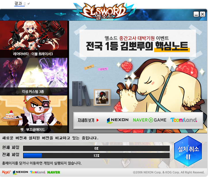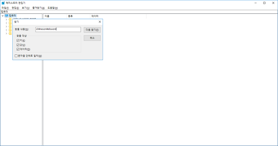 검색 결과가 데이터에 해당될 경우 데이터 중 일치하는 부분을 새 디렉터리(D:nexonelsword)로 변경합니다.