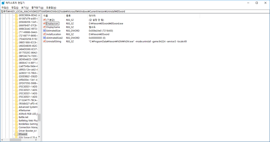 제가 보여드릴 예시는 Nexon\Elsword입니다. 이런 프로그램들은 삭제 후 재설치가 더 소요시간이 짧습니다.
