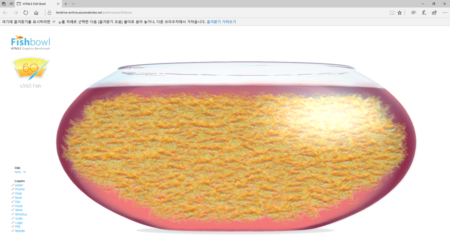 - HTML5 Fishbowl 테스트가 전체적인 HTML5 퍼포먼스를 나타내지는 않습니다.