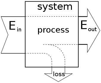 에너지를 투입하면 에너지의 일부를 System에서 사용하고 에너지의 일부는 Loss된다. (실제로 그림처럼 효율이 높은 제품은 거의 없다.)