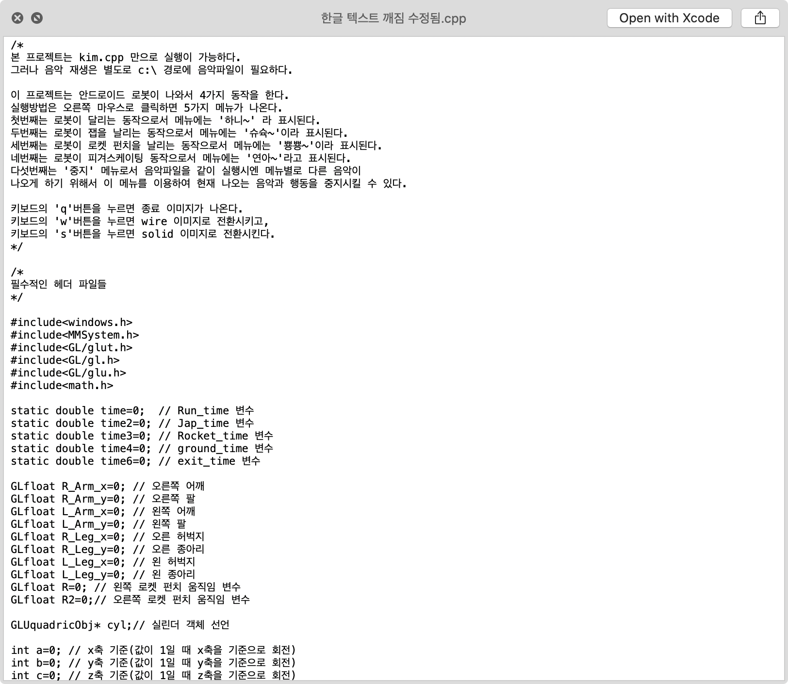 Quick Action에 등록된 서비스를 실행하면 아래처럼 파일 내용이 정상이 된다.