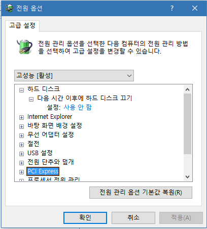 전원 옵션을 고성능으로 바꾸고 싶지 않으면 아래 백업 복원 심화를 읽어보세요