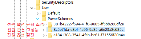 각 항목마다 하위메뉴를 열면 DefaultPowerSchemeValues가 있습니다.