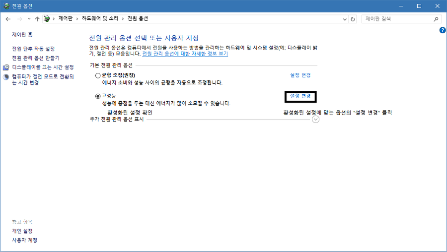 전원옵션 설정으로 이동합니다.