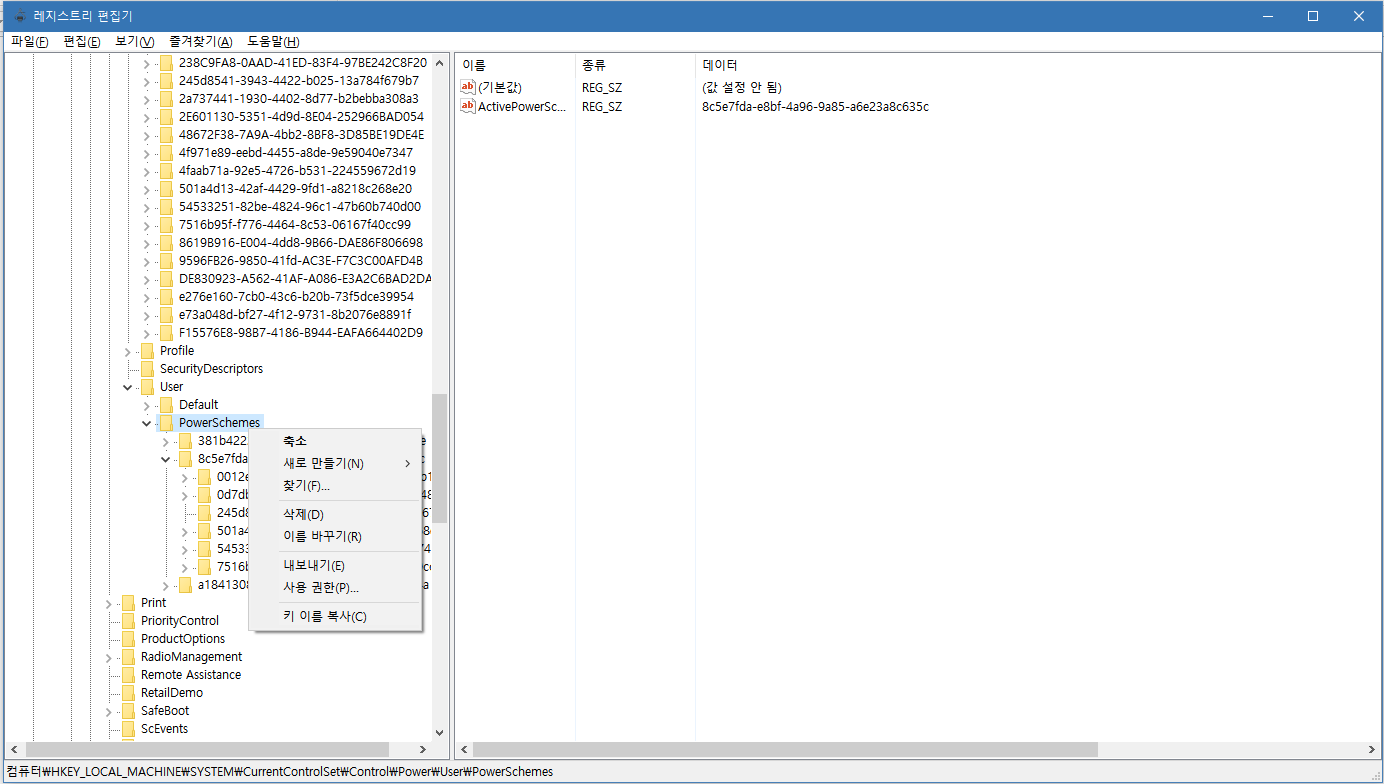 User안의 PowerSchemes를 내보내기 합니다.