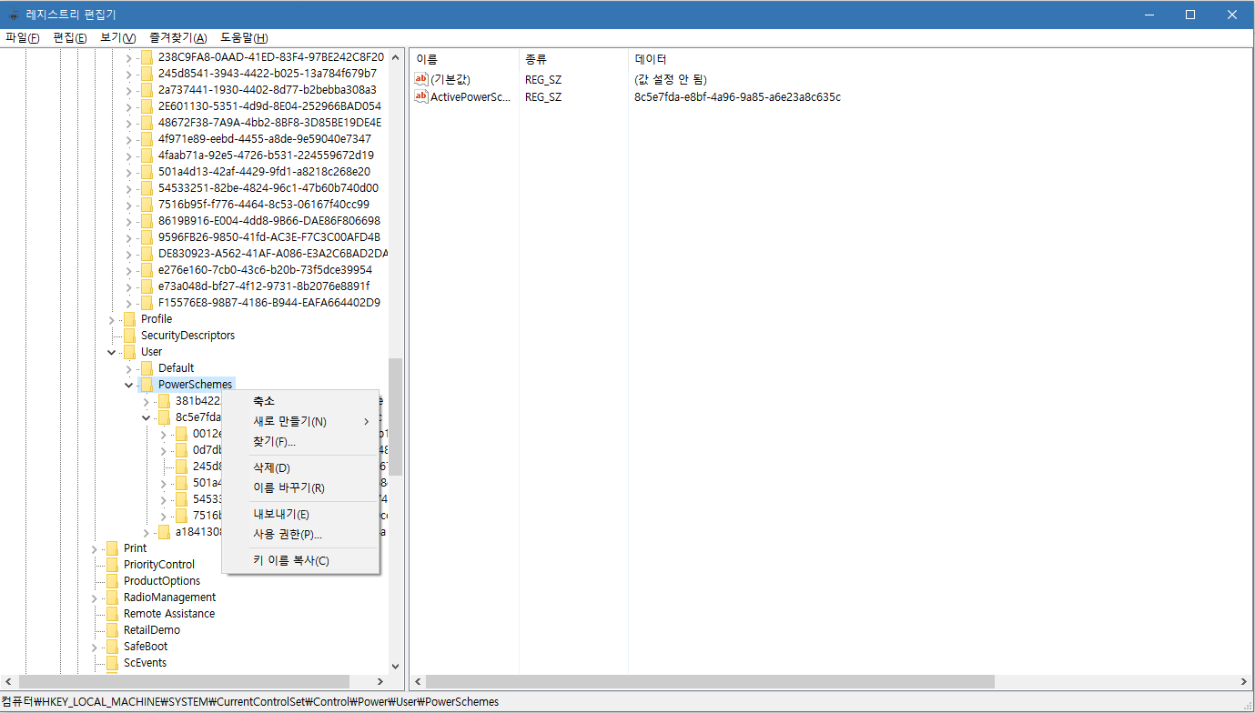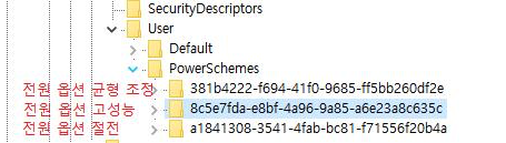 시작 -> regedit 입력 -> 다음으로 이동 HKEY_LOCAL_MACHINESYSTEMCurrentControlSetControlPowerPowerSettings