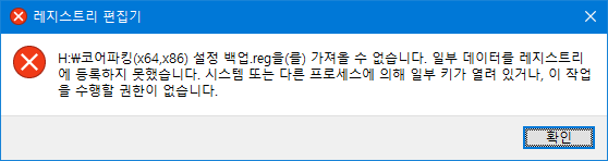 하지만 reg파일을 실행하면 아래와 같은 오류가 발생합니다.