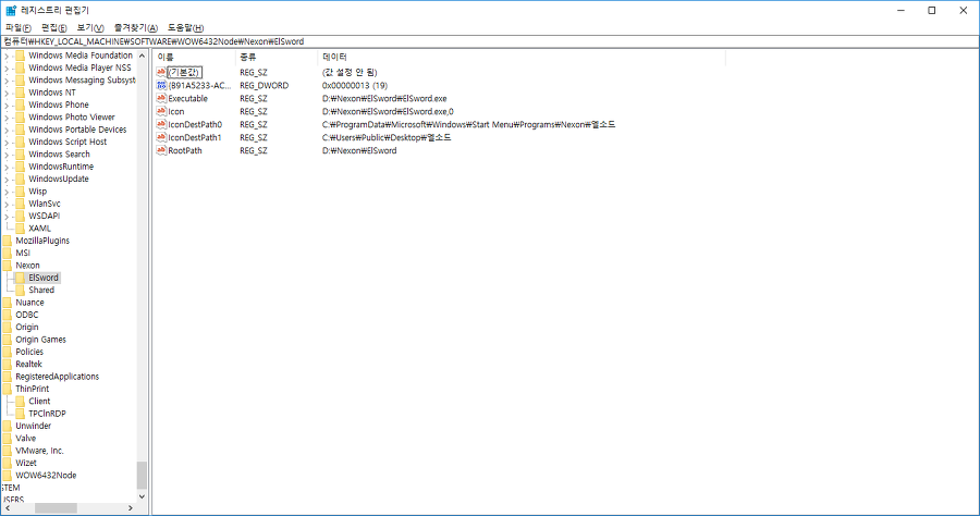 검색 결과가 데이터에 해당될 경우 데이터 중 일치하는 부분을 새 디렉터리(D:nexonelsword)로 변경합니다.