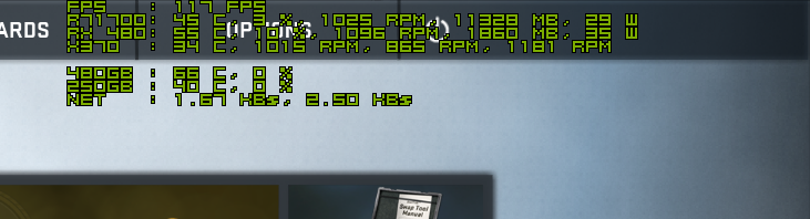 하지만 "OSD에 표시" 체크만으로는 Afterburner에 비해 가독성이 떨어지는 단점이 있습니다. 별도의 설정을 하지 않으면 한 줄에 모든 모니터 값이 표시됩니다. 그리고 섭씨(°C)표시가 되지 않아서 °C대신 C를 사용해야 합니다. 게다가 모니터링 대상이 많기 때문에 CPU사용량도 비교적 높습니다.(Afterburner : 0.2% HWiNFO64 : 0.7~1.0%)