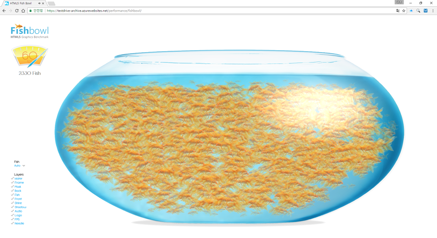 - HTML5 Fishbowl 테스트가 전체적인 HTML5 퍼포먼스를 나타내지는 않습니다.