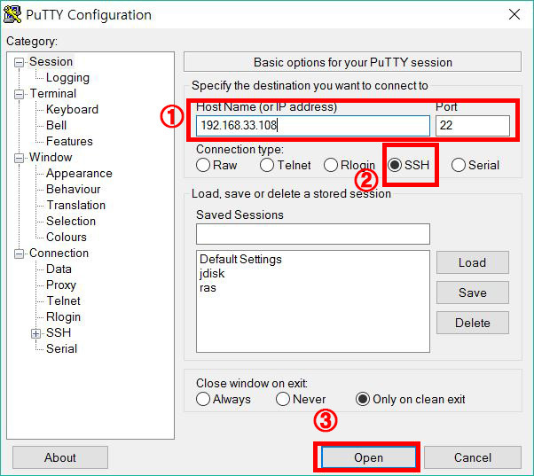 (출처 : papa.2ss.kr/13)Host Name 칸에 원격 컴퓨터의 주소를 입력합니다. NAS 접속 주소를 입력하면 됩니다.