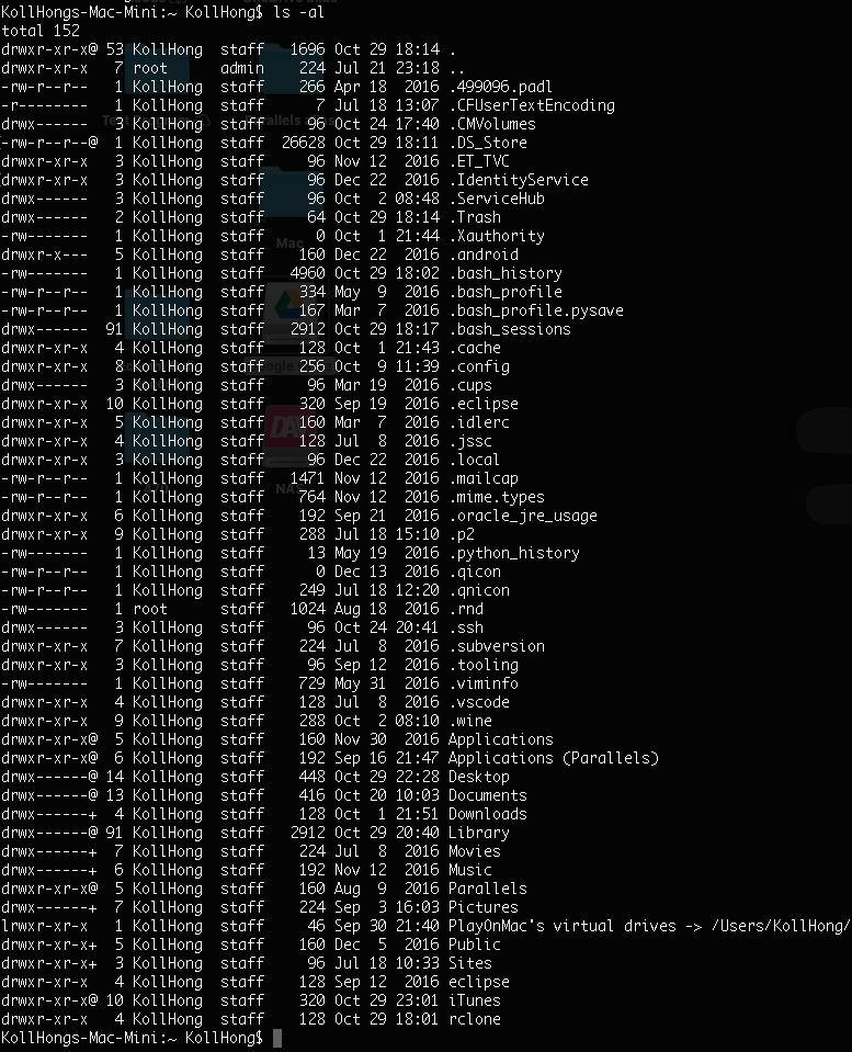 ls에서 -a는 모든 파일 보기(숨겨진 파일 보기) 옵션입니다. -l은 자세한 정보 보기 입니다. 자세한 정보가 필요하지 않더라도 오히려 보기 편해서 -l 옵션은 항상 넣습니다.