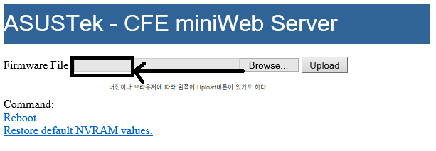 CFE miniWeb Server에서 Browse 버튼 누르기.(Reset버튼을 누른 상태여야 합니다)