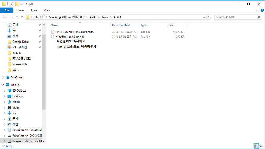 Windows Explorer(탐색기)로 첨부파일\ASUS\Work\AC68U로 이동
