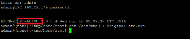 라우터의 펌웨어를 변경하려면 ASUS프로그램이 RT-AC68U로 인식할 수 있어야 한다. 그러기 위해 부트로더를 변경해야 한다.