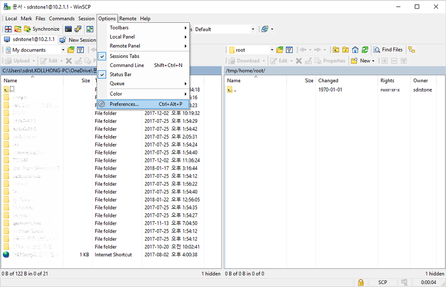 File protocol : SCP : putty는 프로토콜을 바꿀 필요가 없었지만 WinSCP는 반드시 바꿔줘야 한다.
