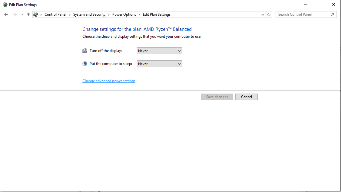 - 그리고 "컴퓨터를 절전 모드로 설정" 아래에 있는 "고급 전원 관리 옵션 설정 변경"을 클릭합니다.