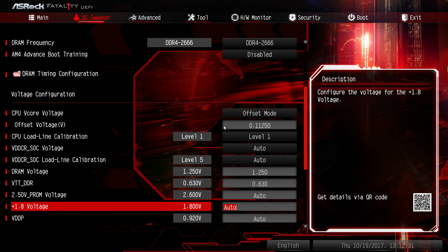 여기서 기본 전압은 1700의 경우에는 1.18750V이다.