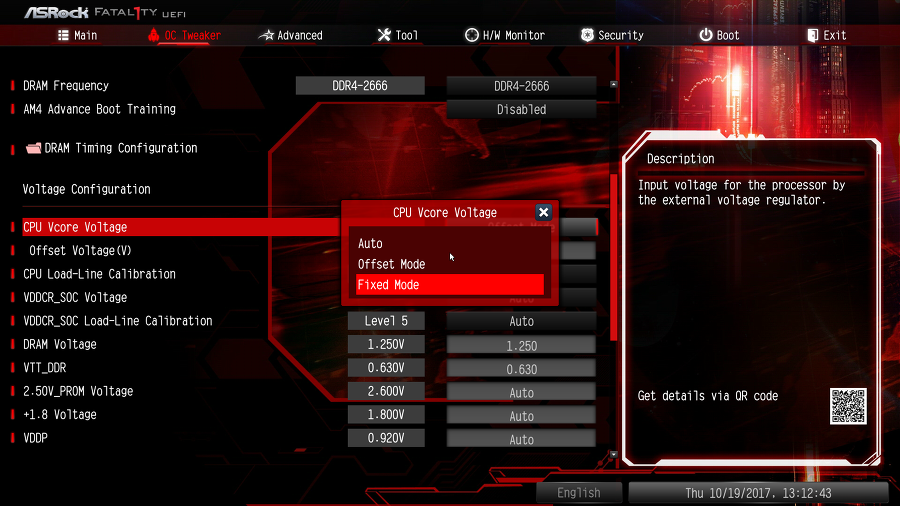 위 사진을 보면 라이젠에서는 CPU Vcore Volate 설정에 Auto, Offset Mode, Fixed Mode 뿐입니다.